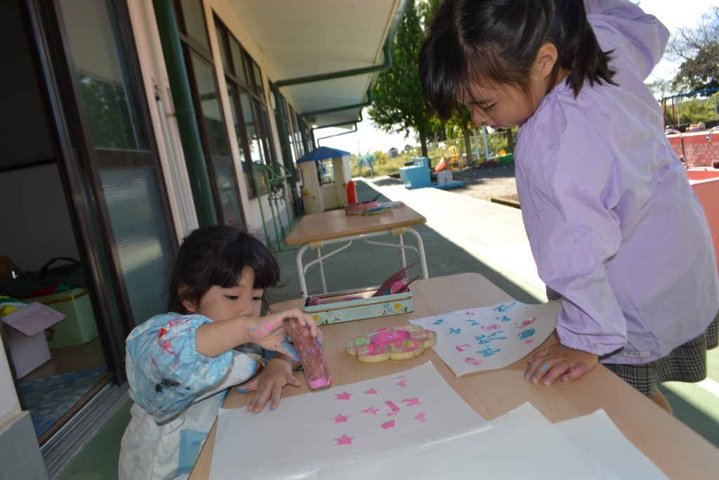 いつも食べているさつまいもがスタンプになることに子どもたちも驚き、もくもくとスタンプ遊びを楽しんでいました。