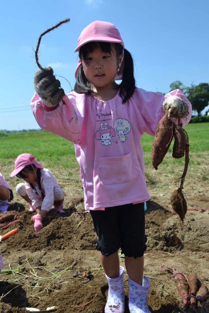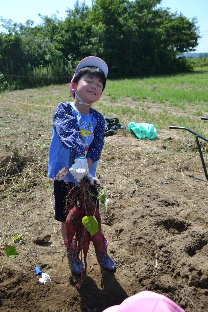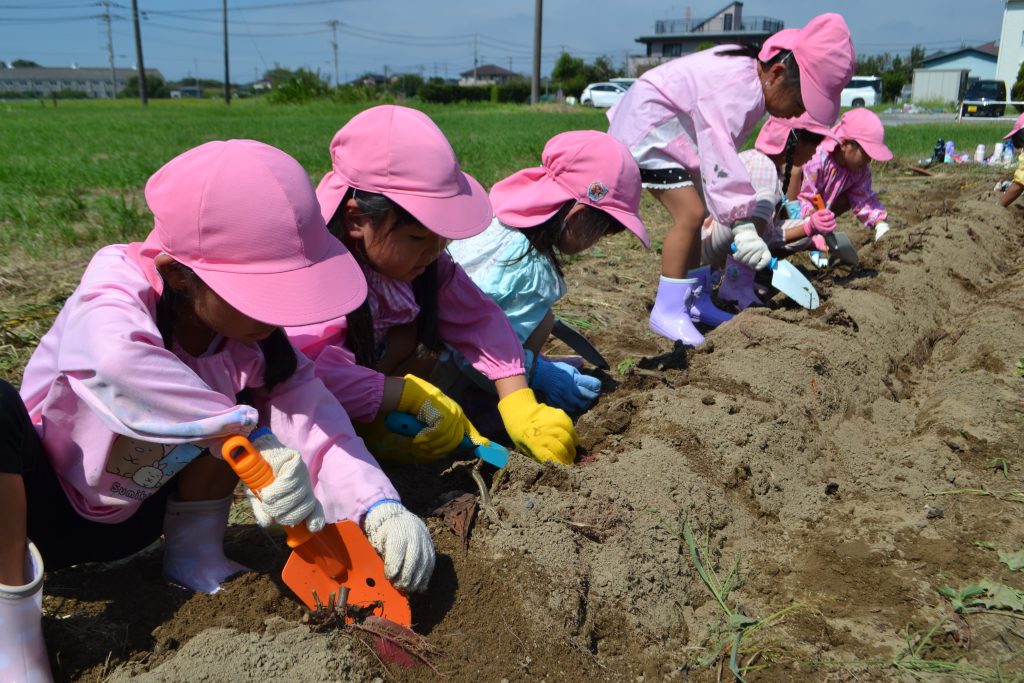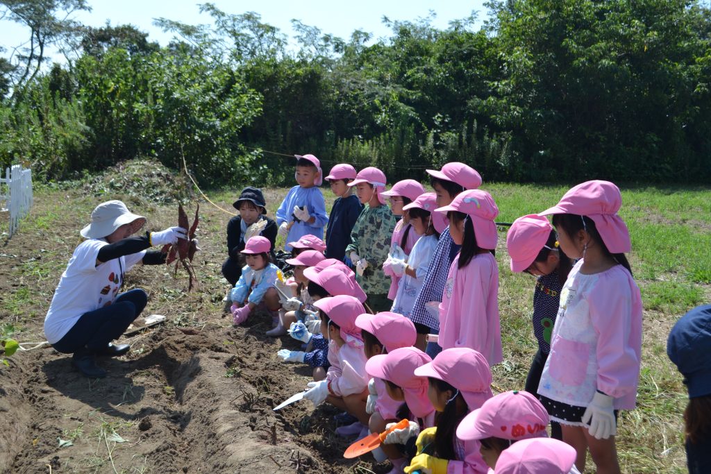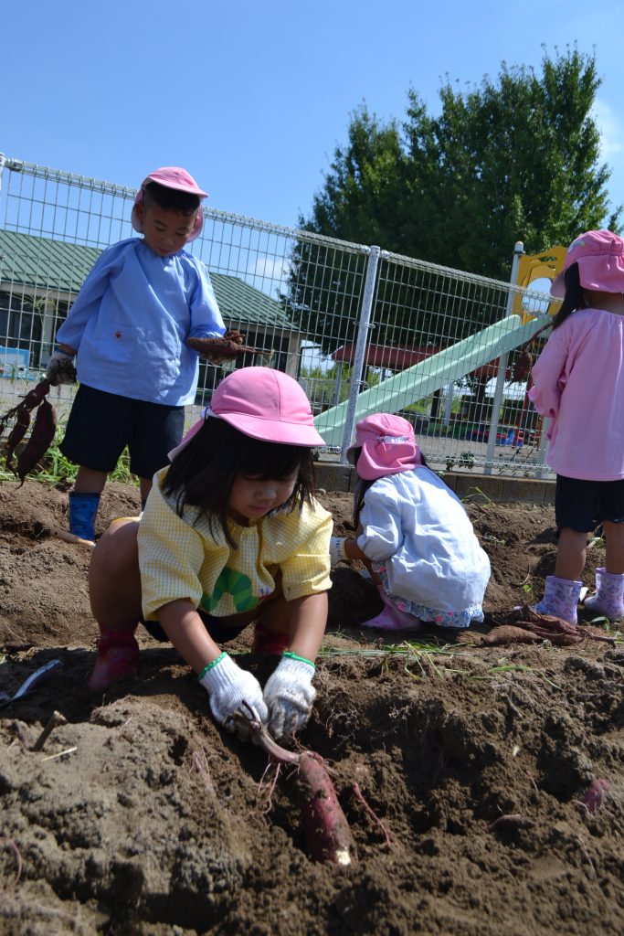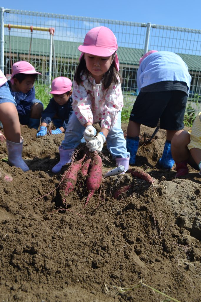「さあ、次は年長組のお友だちが掘ってみよう!」と言われると子どもたちはどんなお芋が掘れるかドキドキ、ワクワクです。
