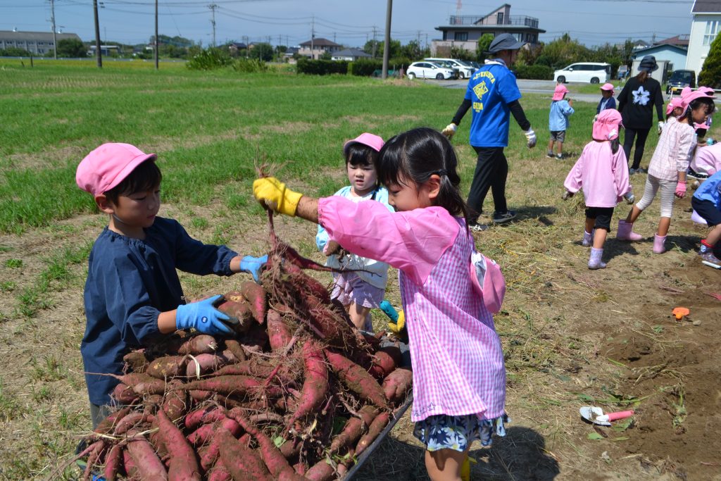 みんなで掘ったさつまいもは全部で200本以上もあり、数えるのがとても大変でしたが、掘っていくうちに大きいお芋や、小さいお芋、細長いお芋などいろいろな形のお芋がたくさんあり、子どもたちも大興奮でした。